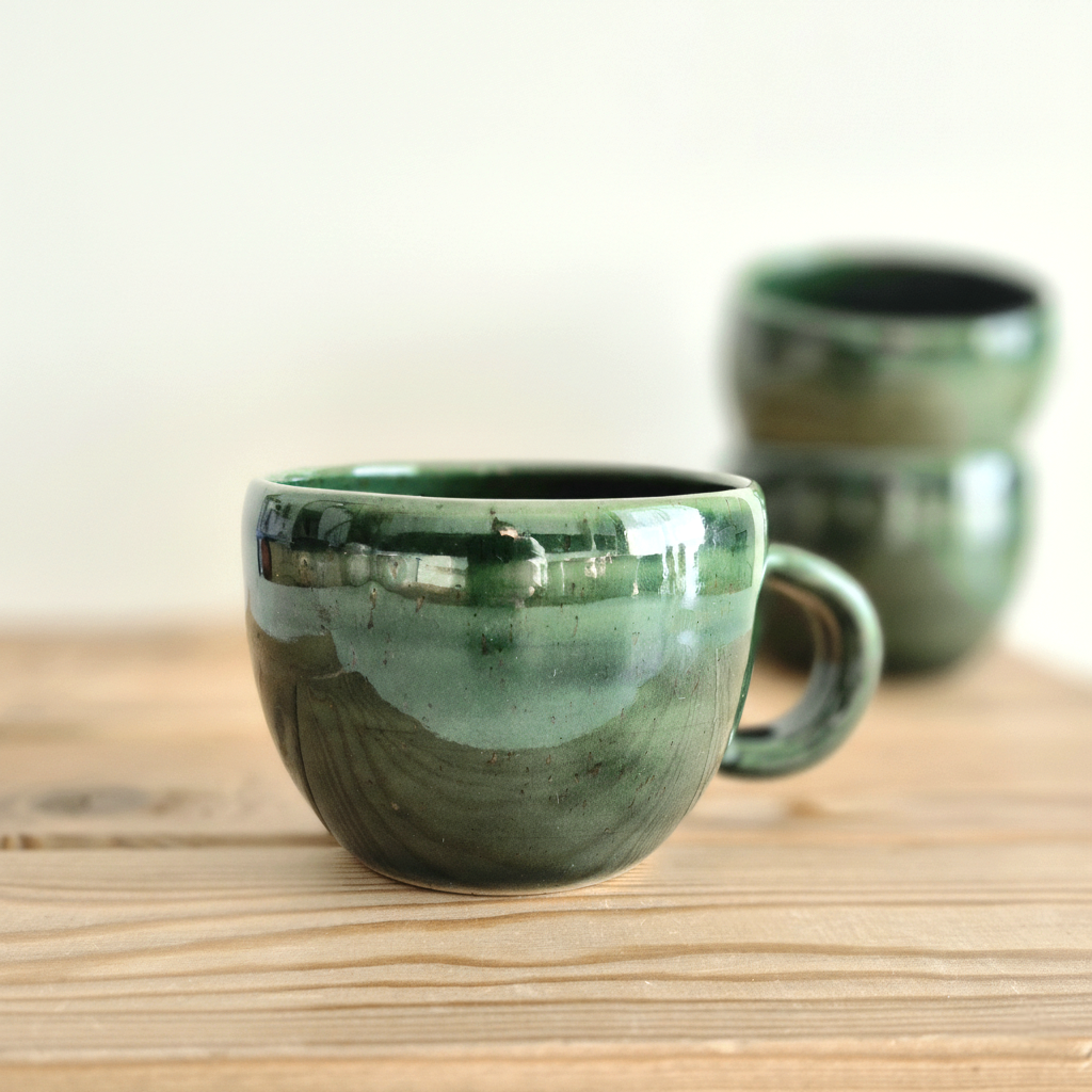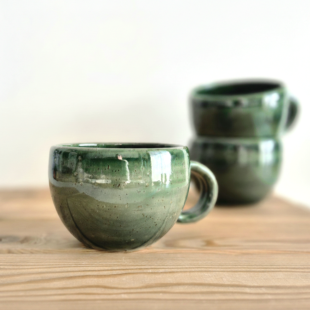Įsivaizduokite, jog dieną pradedate su unikaliu ir rankomis gamintu puodeliu. Žaliu puodeliu su patogia rankenėle ir jaukia apvalia forma.